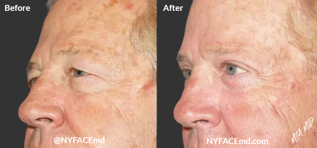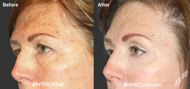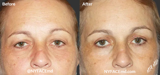 At NYFACEmd and Oasis Medi-Spa New York, our highly trained facial plastic surgeons are experts at eyebrow and forehead lifts. Facial aging causes the skin of our forehead and around our eyebrows to sag or droop. This lowers the natural position of the eyebrows and dramatically alters the appearance of the face. A droopy brow has the undesired result of making a person appear tired or angry. If the eyebrow is too high, it can make a person look overly surprised or concerned.